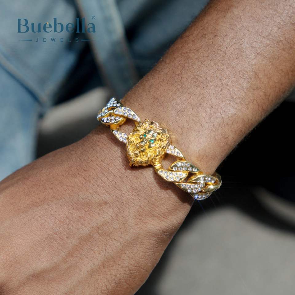 Haute qualité 13mm 18K or massif glacé Lion Bracelet cubain pour hommes Hip Hop Style Moissanite bijoux