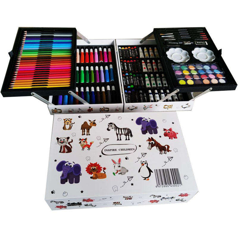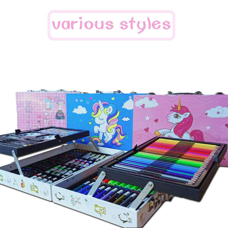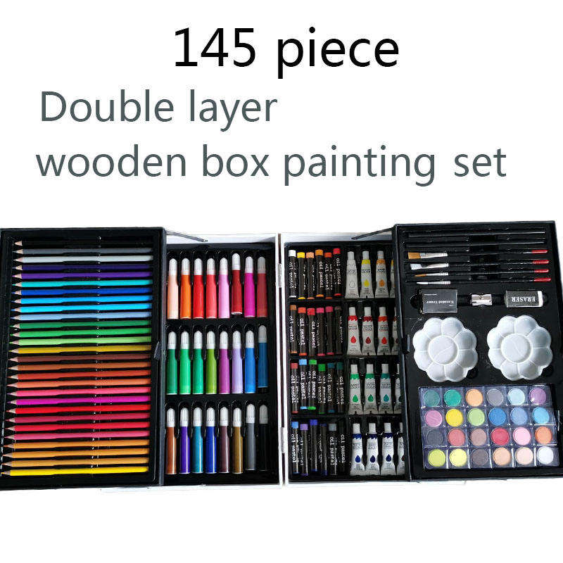 Ensemble d'art pour enfants de haute qualité, 145 pièces, peinture colorée, croquis et dessin, boîte en bois, cadeau d'anniversaire parfait