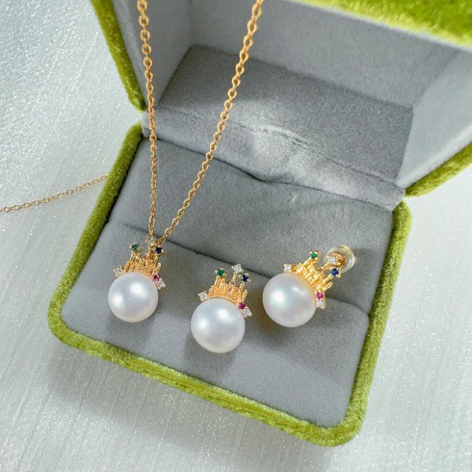 Ensemble collier et boucles d'oreilles en or 14 carats plaqué or de haute qualité avec perle d'eau douce naturelle, style château de princesse, pour bijoux fins