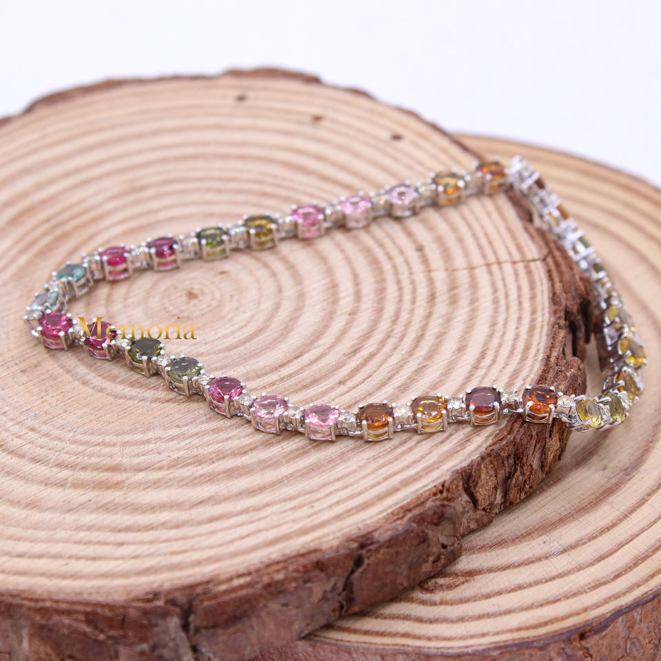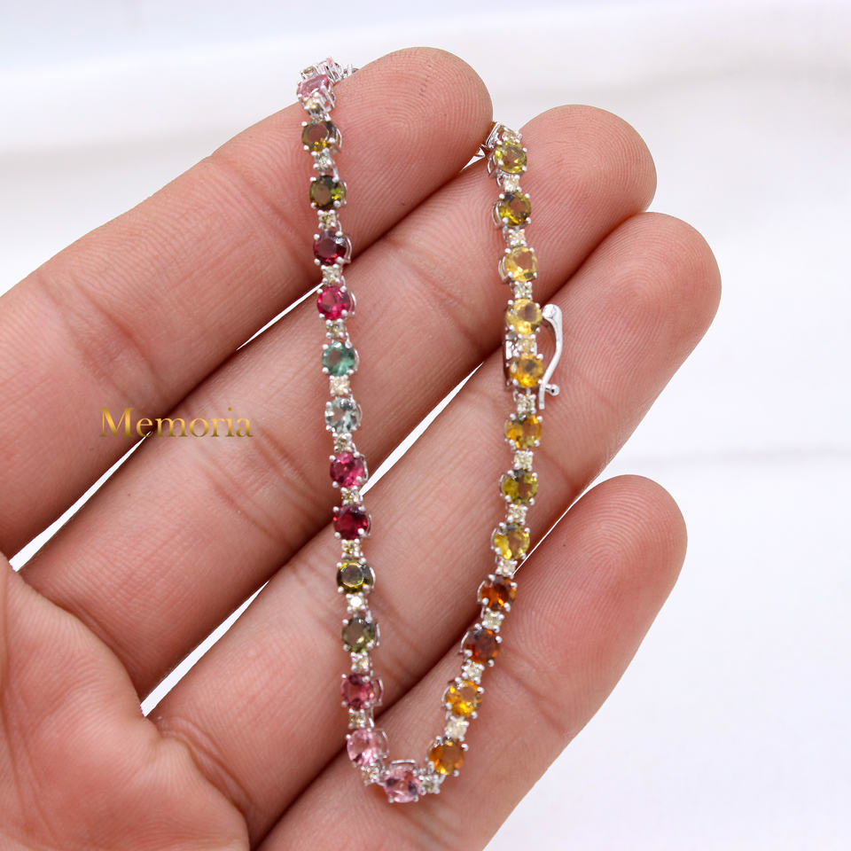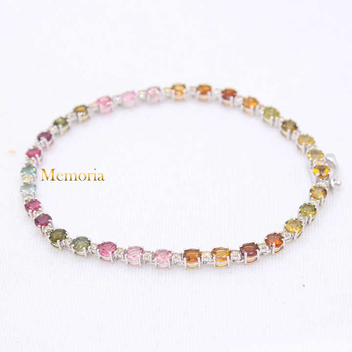 Item Name:Multi Tourmaline & Diamond 14k White Gold Bracelet