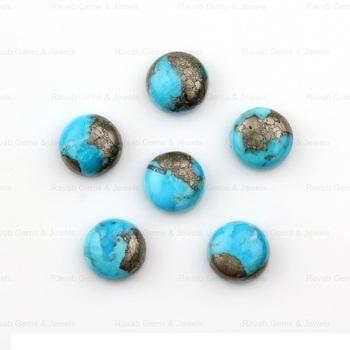 Product Name:Pyrite & Turquoise Smooth Round Shape Loose Gemstone Cabochon