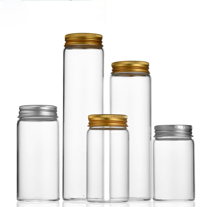 Tube à essai de haute qualité 15ml-100ml Tubes transparents en plastique Paquet de graines de plantes Tube à essai en plastique avec capuchon en aluminium doré