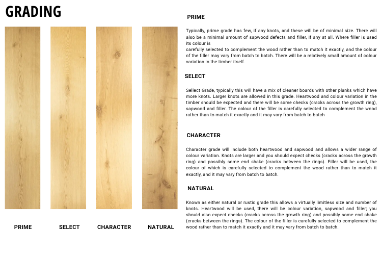 Surface Grading:Select Grade, Character Grade, Rustic / Natural Grade