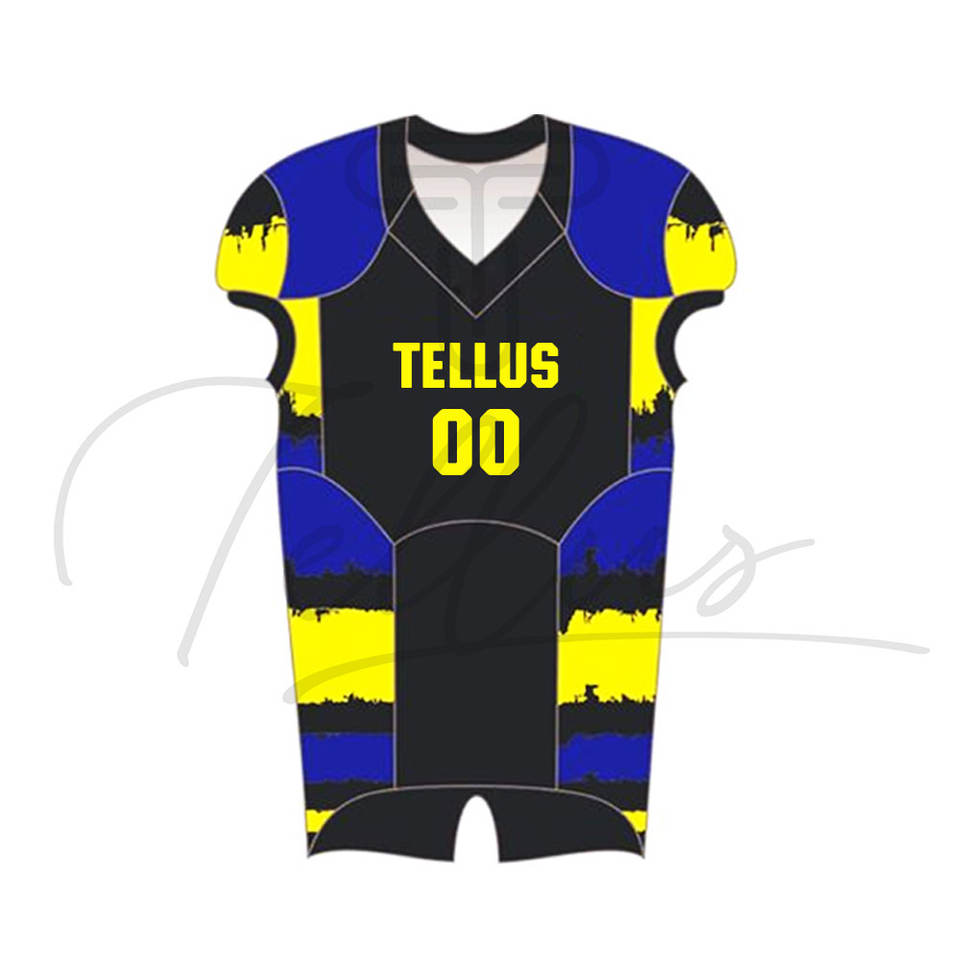 Uniforme de football américain de haute qualité à 16 panneaux avec manches courtes, motif imprimé, logo personnalisé, 100% polyester