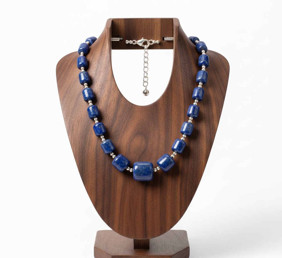 Collier pour femme de haute qualité en argent 925 de 18 pouces, design de fermoir artisanal, perles en lapis-lazuli naturel, tendance plaqué or