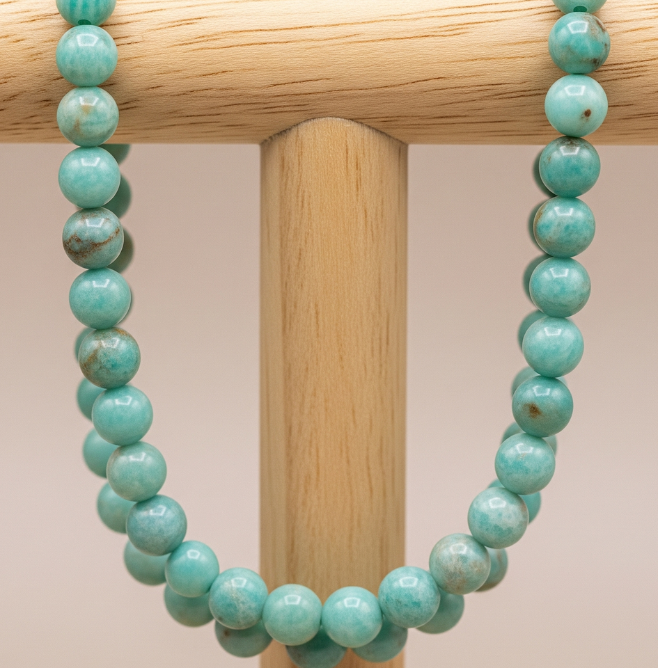 High Quality 18-Inch Women's Silver 925 Lock Beaded Fashion Accessory Natural Amazonite Stone Hand Knotted Design Gold Gift