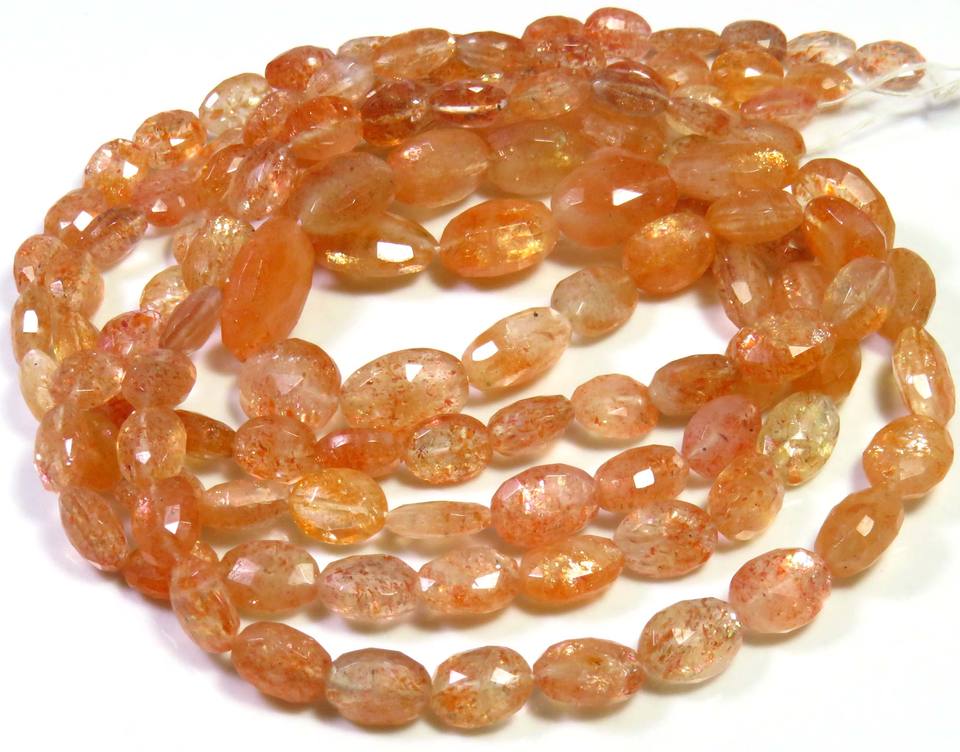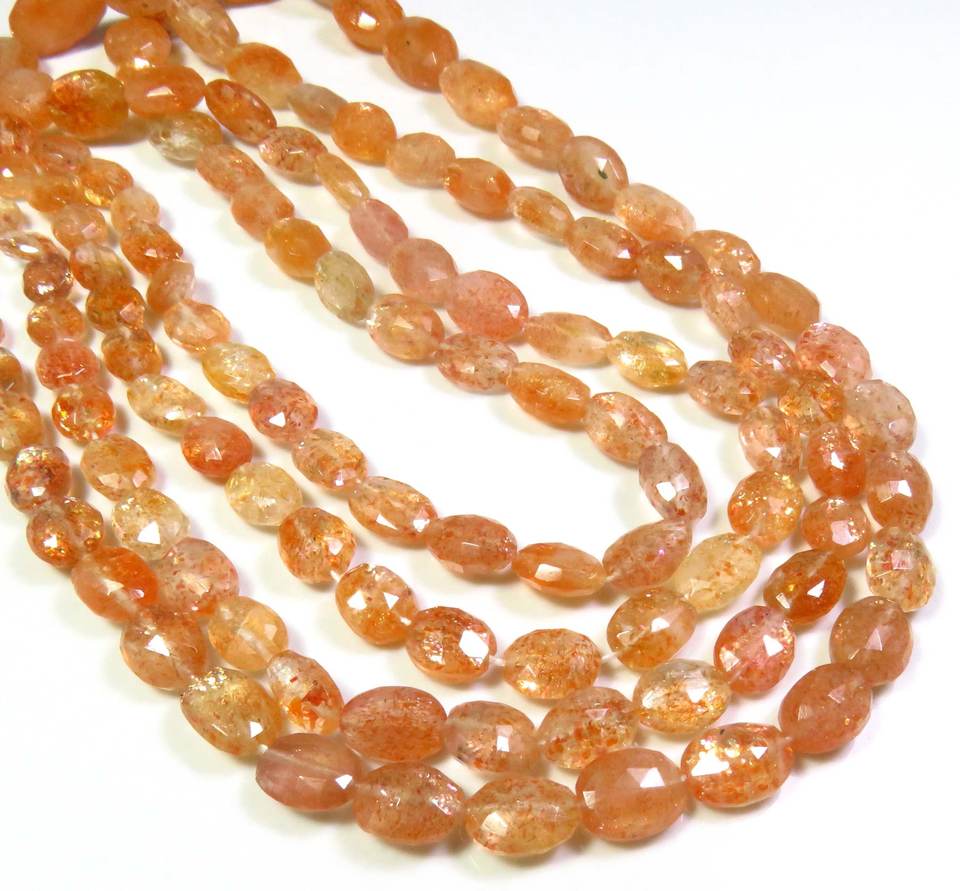 Haute Qualité 18 \ "Strand Naturel Orange Facettes Coupe Ovale Africain Arc-En-Ciel Pierre De Soleil Perles 6-12mm Pierre Précieuse En Vrac