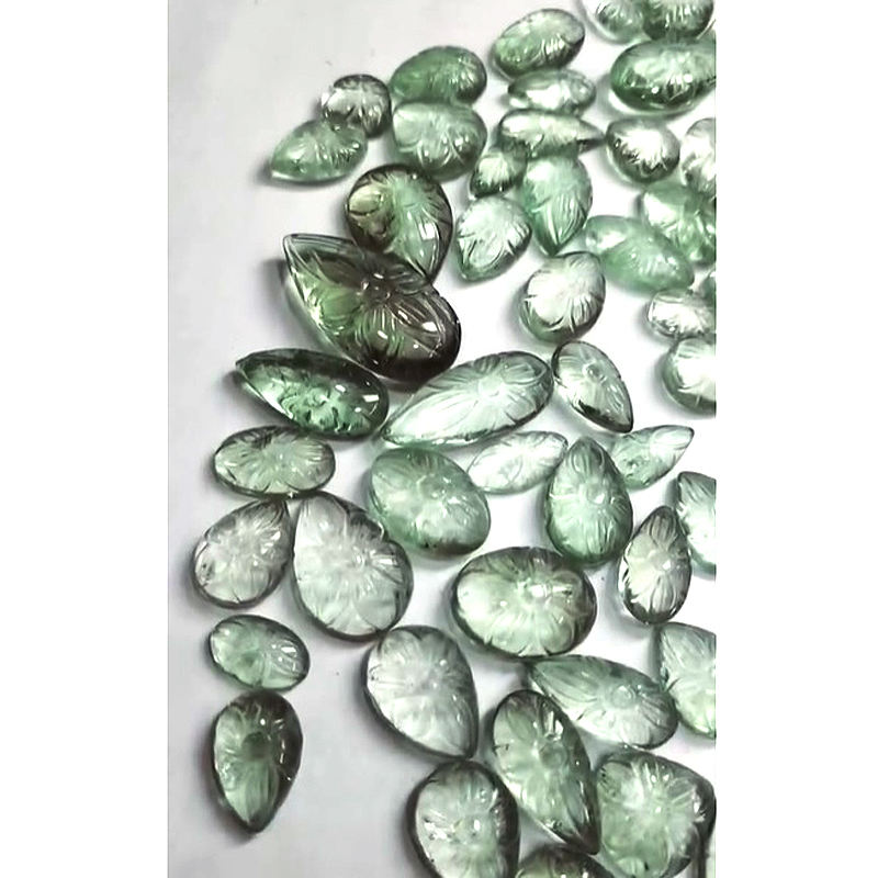 Haute qualité 185 pièces naturel vert améthyste feuille sculpture 2285 Cts Lot pierre précieuse en vrac coupe 13mm-35mm sculpture feuille 2285 Cts Lot