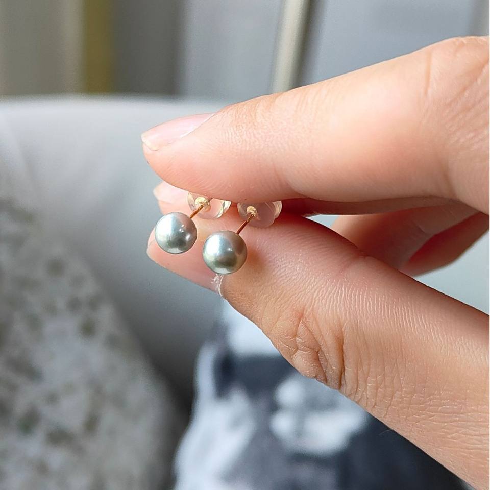 High Quality 18K Gold Akoya Hemp Pearl Earrings Natural Seawater Cold Blue with Strong Light and High Luster