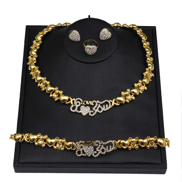 Ours en peluche plaqué or 18K, ensemble de bijoux de haute qualité pour enfants, avec je t'aime,