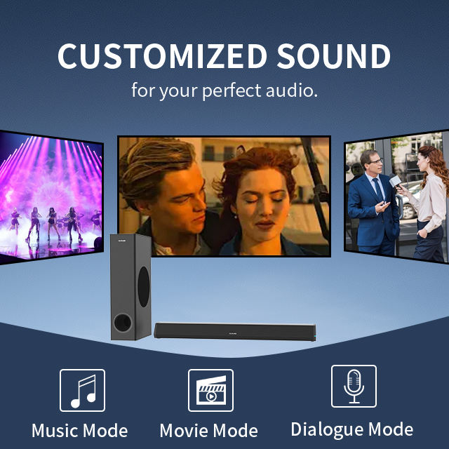 Nom du produit:2.1 Barre de son avec caisson de basses filaire, système home cinéma