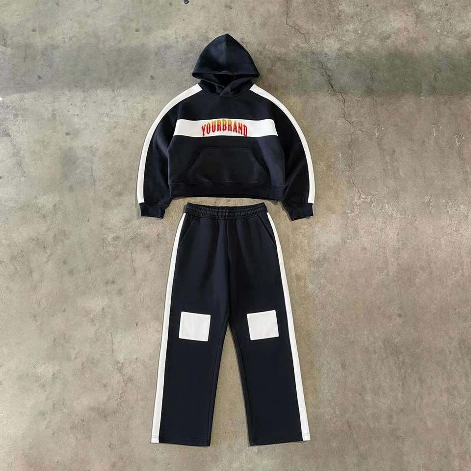 Ensemble de survêtement pour homme de haute qualité, 2 pièces, sur mesure, sweat-shirt à capuche et pantalon de survêtement à jambe droite, style streetwear, sport, 100% polyester, taille surdimensionnée