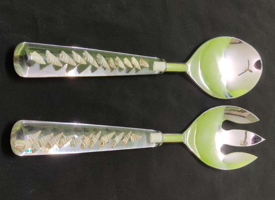 Ensemble de cuillères à salade 2 pièces de haute qualité en acier inoxydable clair Turquoise époxy vadrouille résine métal mesure cuillères à miel