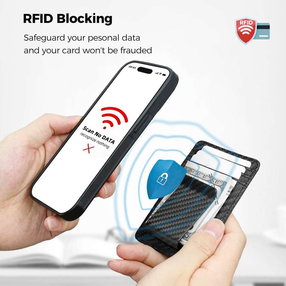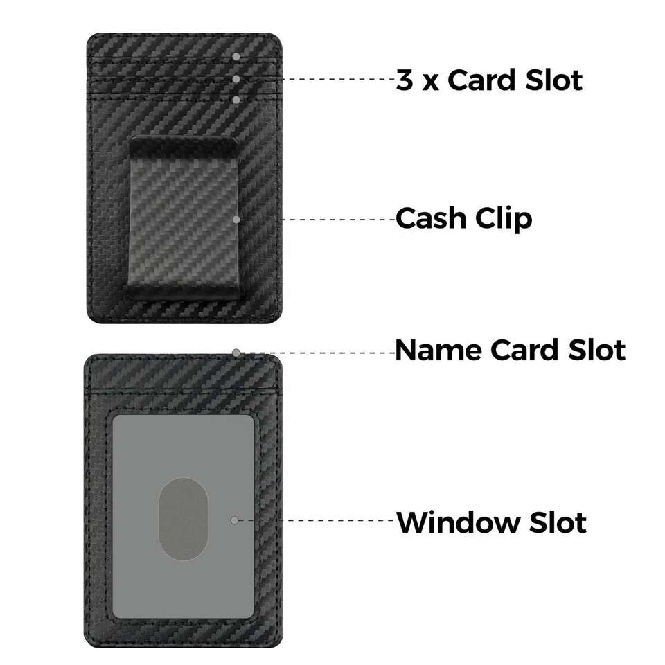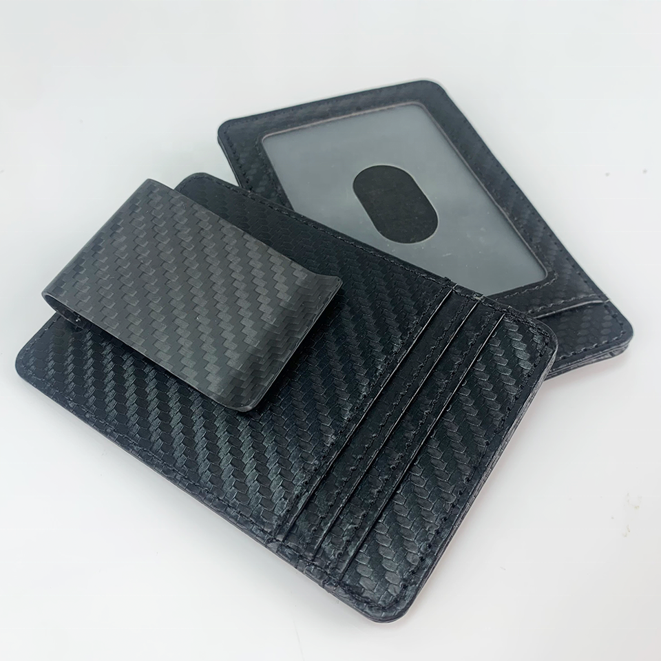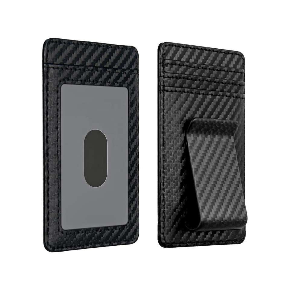 Porte-cartes et pince à billets 2-en-1 en fibre de carbone véritable mat de haute qualité, antivol, minimaliste, en cuir PU, portefeuille fin pour affaires