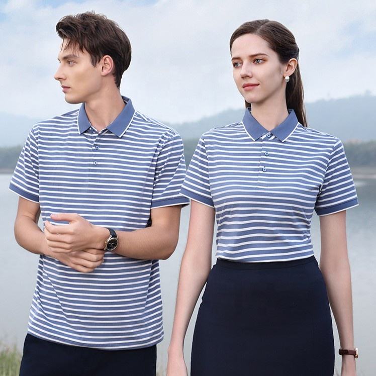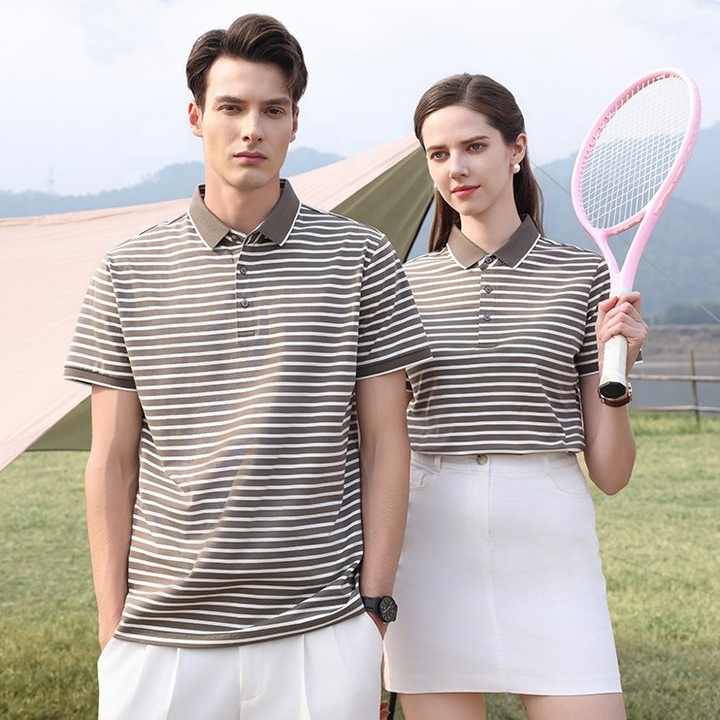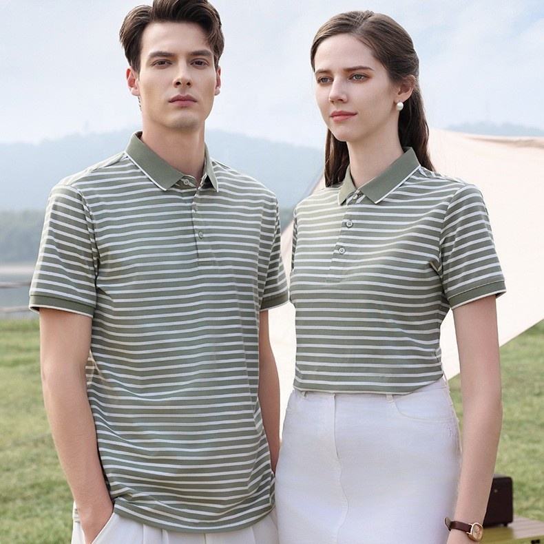 High Quality 200gsm Cotton Silk Spandex Tri-blend Luxurious Smart Casual Striped Short Sleeve Button-up Golf Polo Shirts For Men