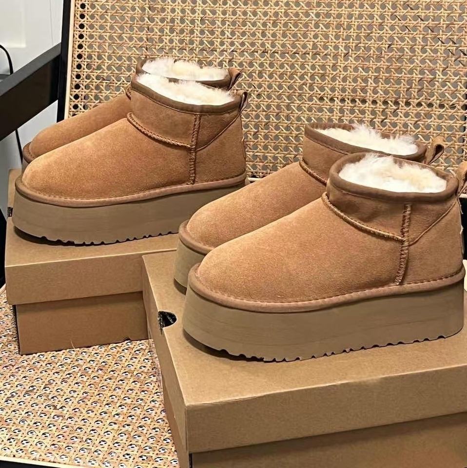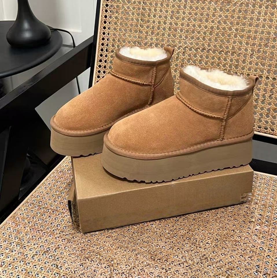Bottes de neige en laine de haute qualité 2025, style original pour hommes et femmes, doublées en coton, semelles épaisses, chaussures de marche UGG