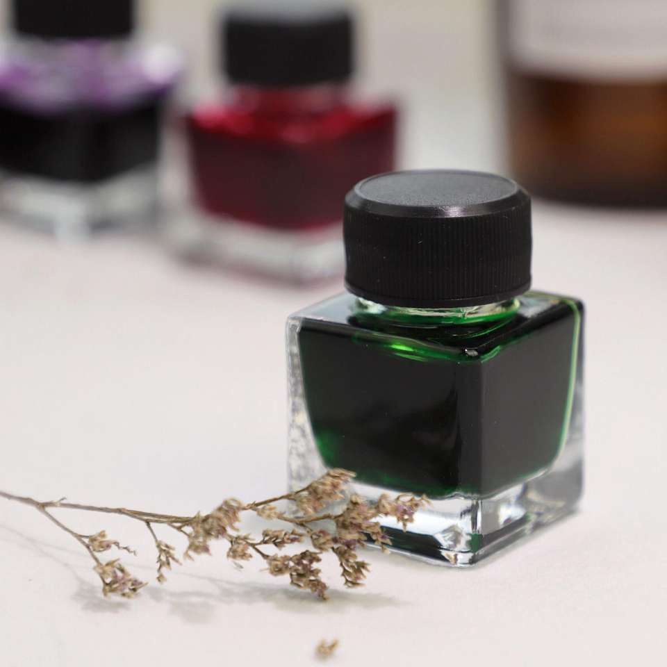 Bouteille en verre avec de l'encre
