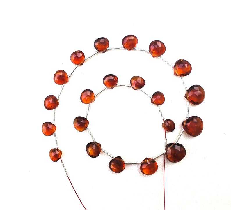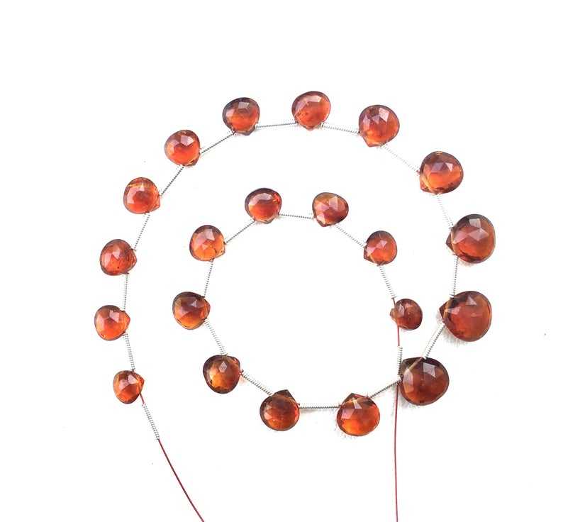 Haute qualité 21 pièces en forme de coeur Briolette perles 1 brin naturel hessonite à facettes pierres précieuses fabrication de bijoux pierre cristal