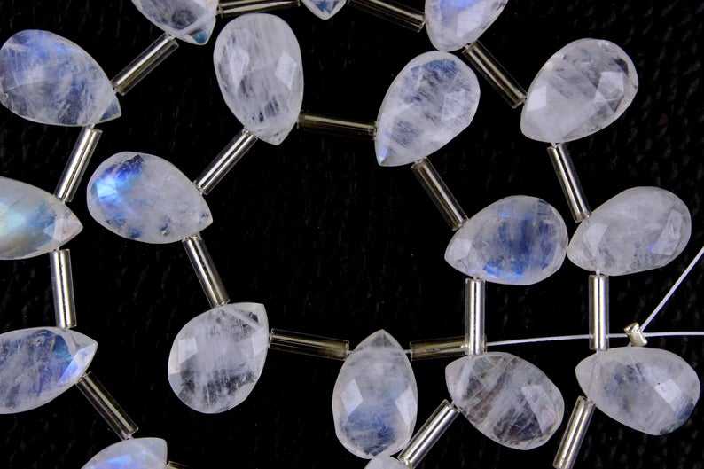 High Quality 21-Piece Set Natural Rainbow Moonstone Faceted Pear Shape Genuine Blue Fire Gemstone Briolette Beads White Colour