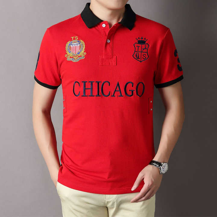 T-shirt à col roulé pour homme en coton 220 g/m² de haute qualité, brodé sur mesure, bleu marine, coupe ample et confortable, ATREIDES, écologique, séchage rapide