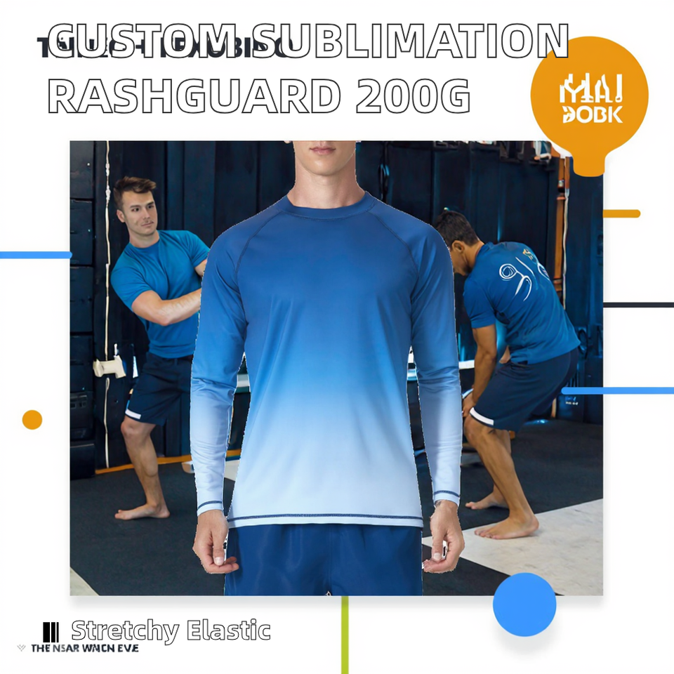 Maillot de compression unisexe respirant de haute qualité 220g/m à manches longues pour MMA BJJ, personnalisable par sublimation frontale, pour l'entraînement en salle de sport