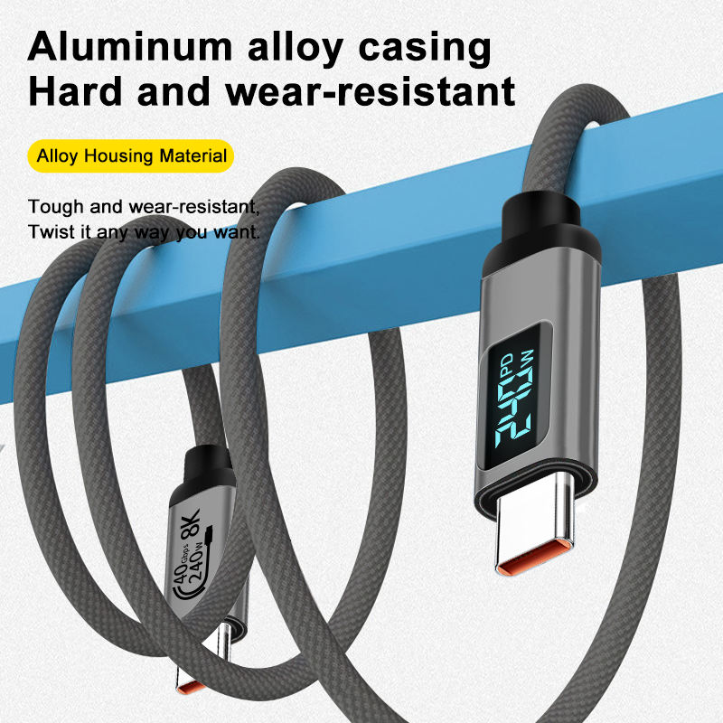 Câble de charge rapide USB4 Type-C vers Type-C de haute qualité 240W 8K 40 Gbps avec gaine en nylon pour téléphone, écouteurs, montre