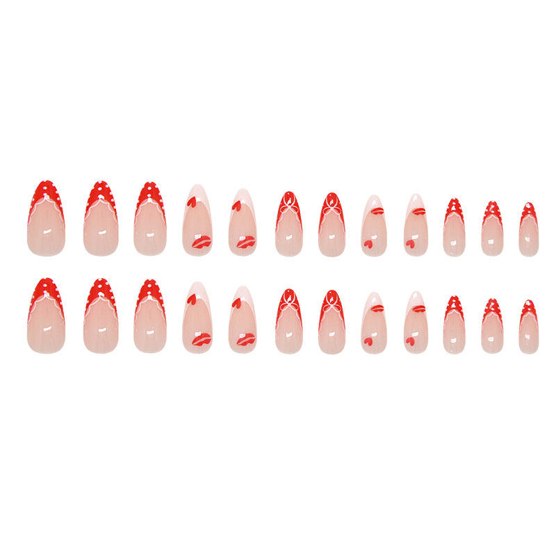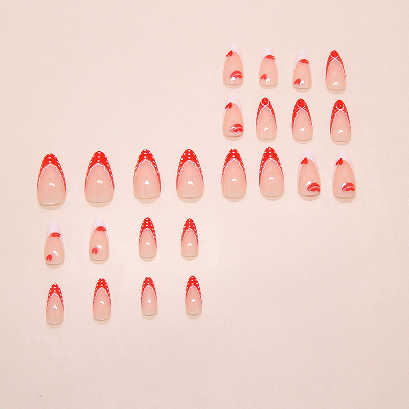 Ongles à presser de haute qualité, 24 pièces, French Manucure Amande, Faux Ongles Artificiels Rouges, Vente en Gros