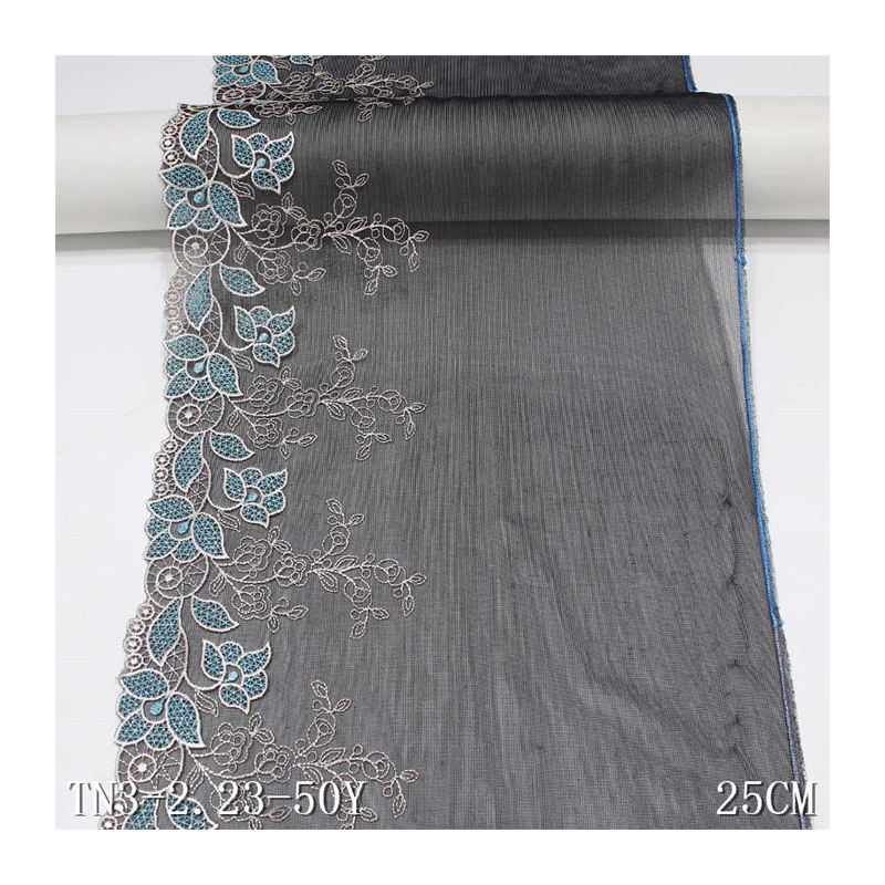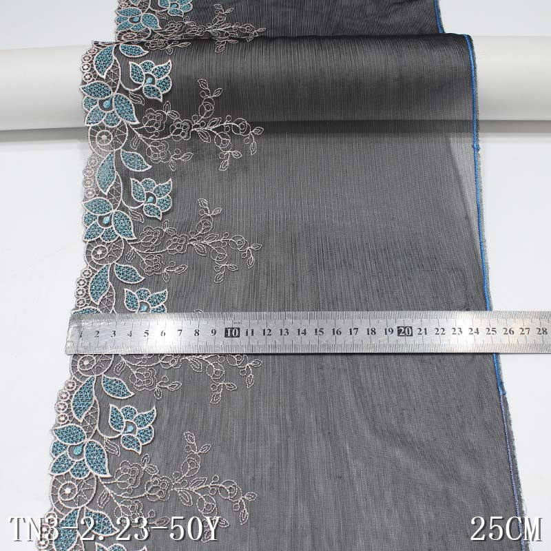 Dentelle brodée de 25cm, tissu en maille douce Polyester argent, dentelle brodée, noir, de haute qualité, 1 pièce