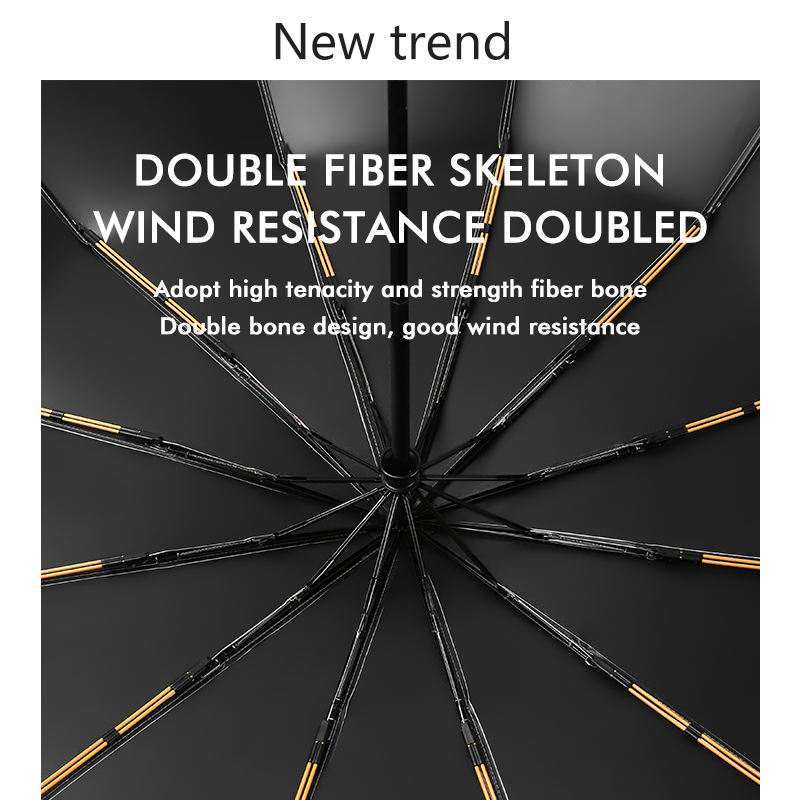 Parapluie de haute qualité, 27 pouces, grand format, coupe-vent, entièrement automatique, en tissu nylon 210T, classique, bleu foncé, revêtement noir, cadeaux d'affaires