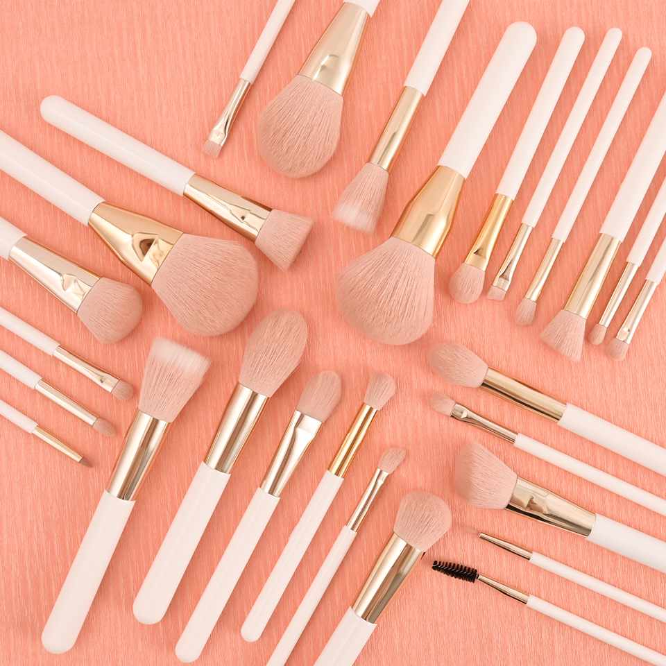 27 pièces de haute qualité, couleur or blanc, rose, cheveux synthétiques, mode fond de teint, sourcils, cils, maquillage, ensemble de pinceaux, logo personnalisé