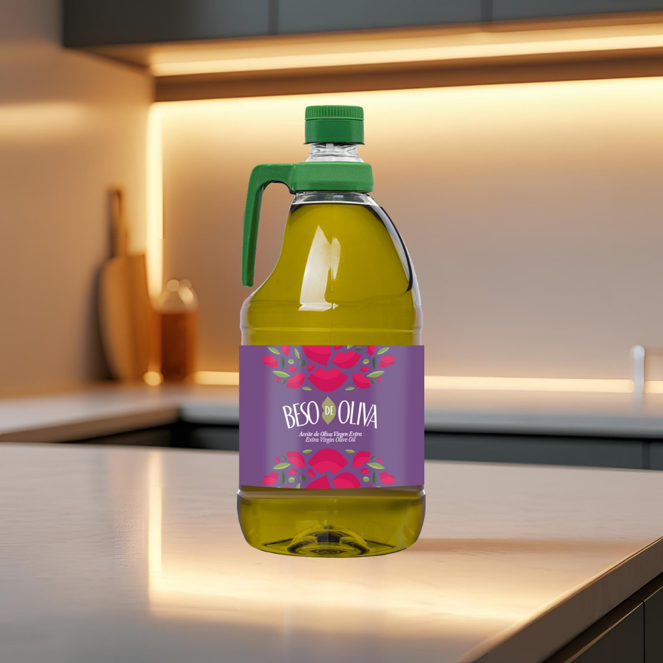 Huile d'olive vierge PET "Beso De Oliva" de haute qualité 2L pour la cuisine et les vinaigrettes