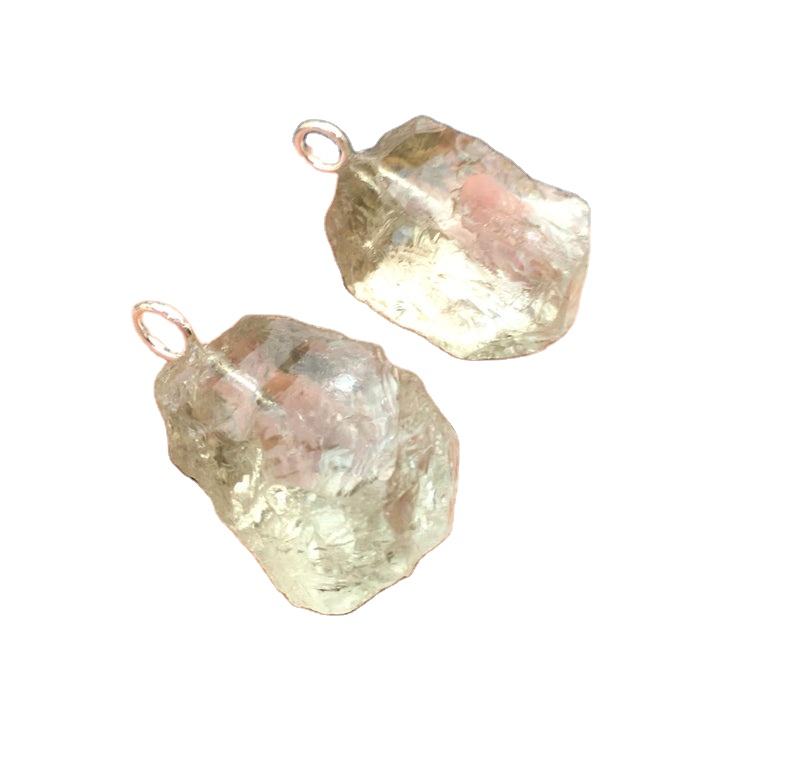 Haute qualité 2 pièces 92.5 pendentif en argent Sterling naturel vert améthyste pierre précieuse non traitée bijoux à breloque brute plaqué or
