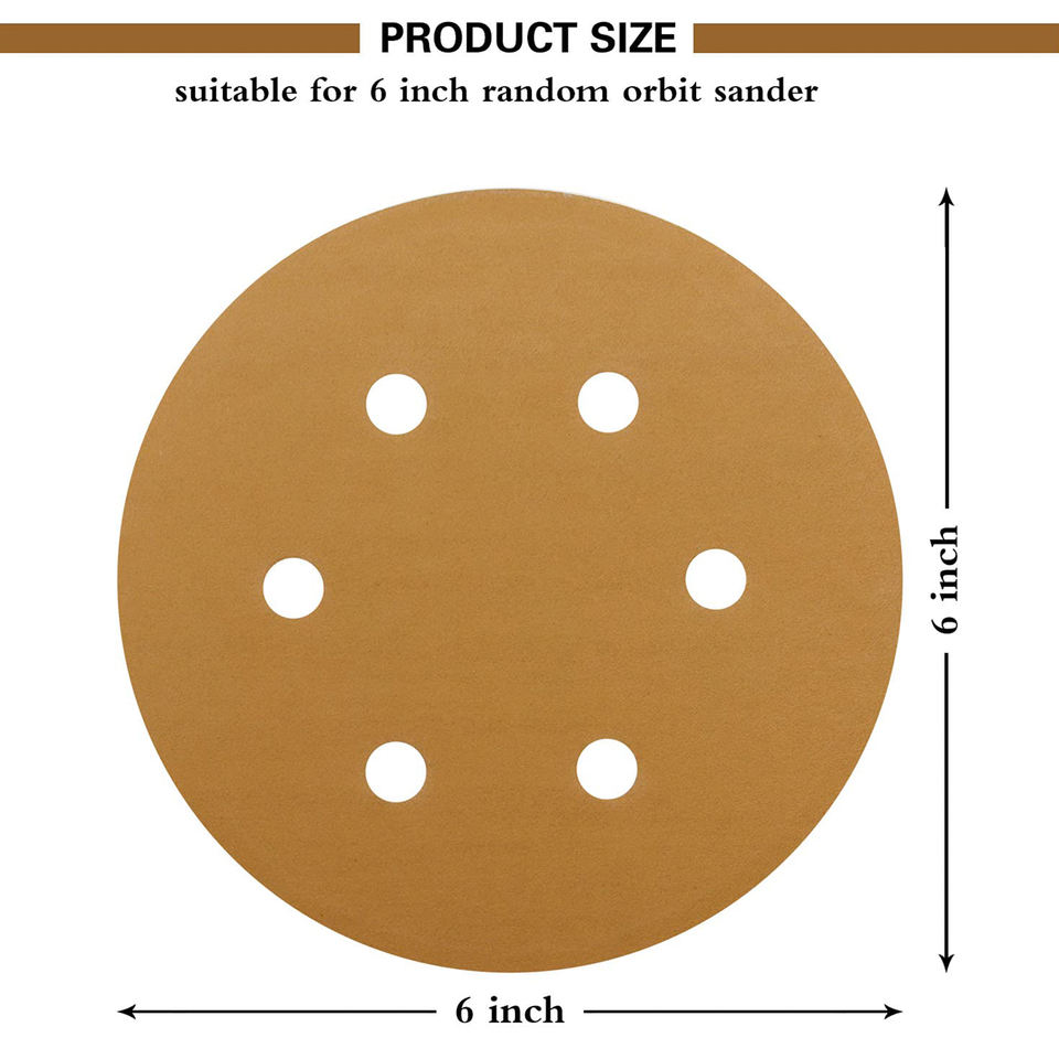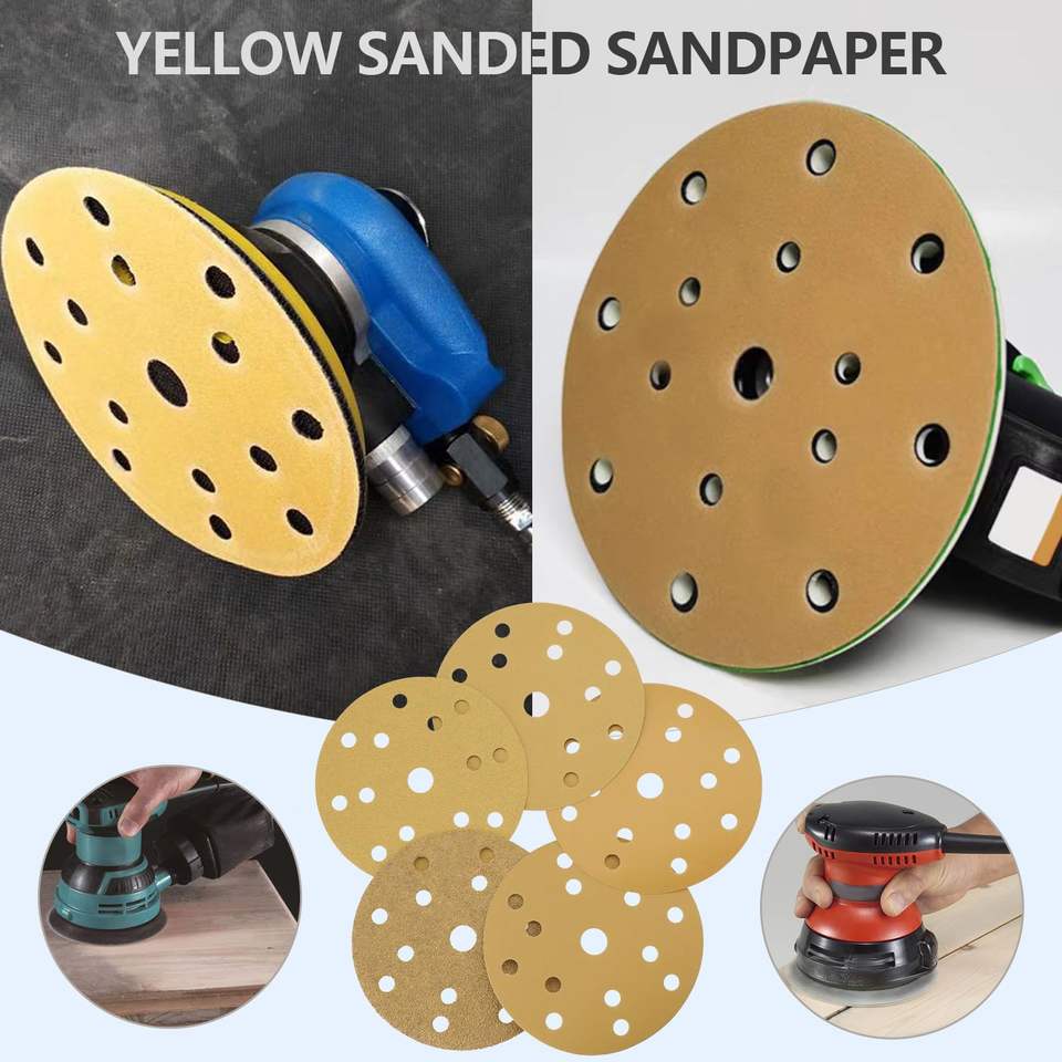 Disque de ponçage à crochet et boucle en oxyde d'aluminium jaune de haute qualité, 3 à 6 pouces, durable et haute efficacité pour le polissage du bois et du métal