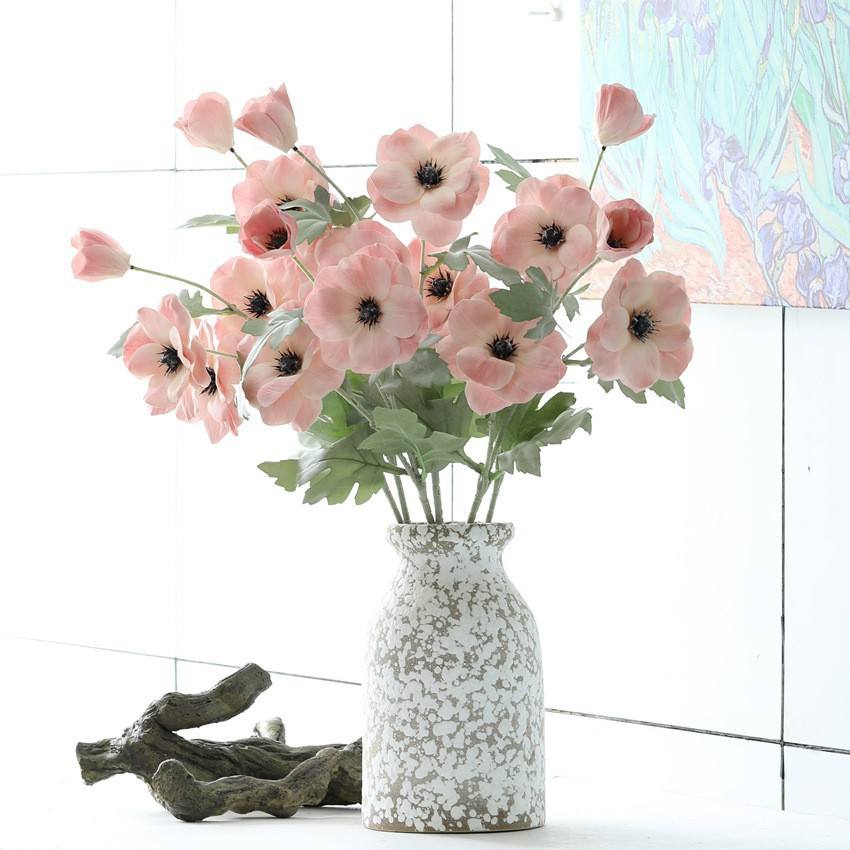 Fleurs de pavot de haute qualité à 3 têtes, fleurs d'anémone en soie, pavot floqué, tige pliable pour la décoration de mariage, décoration de la maison, centre de table