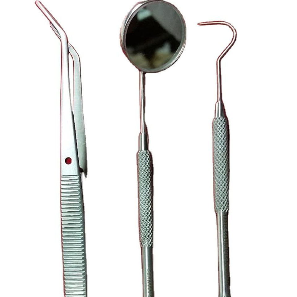 Ensemble d'examen de haute qualité en 3 pièces : sonde PMT, pince à épiler et miroir buccal avec manche, instruments dentaires avec votre propre marque