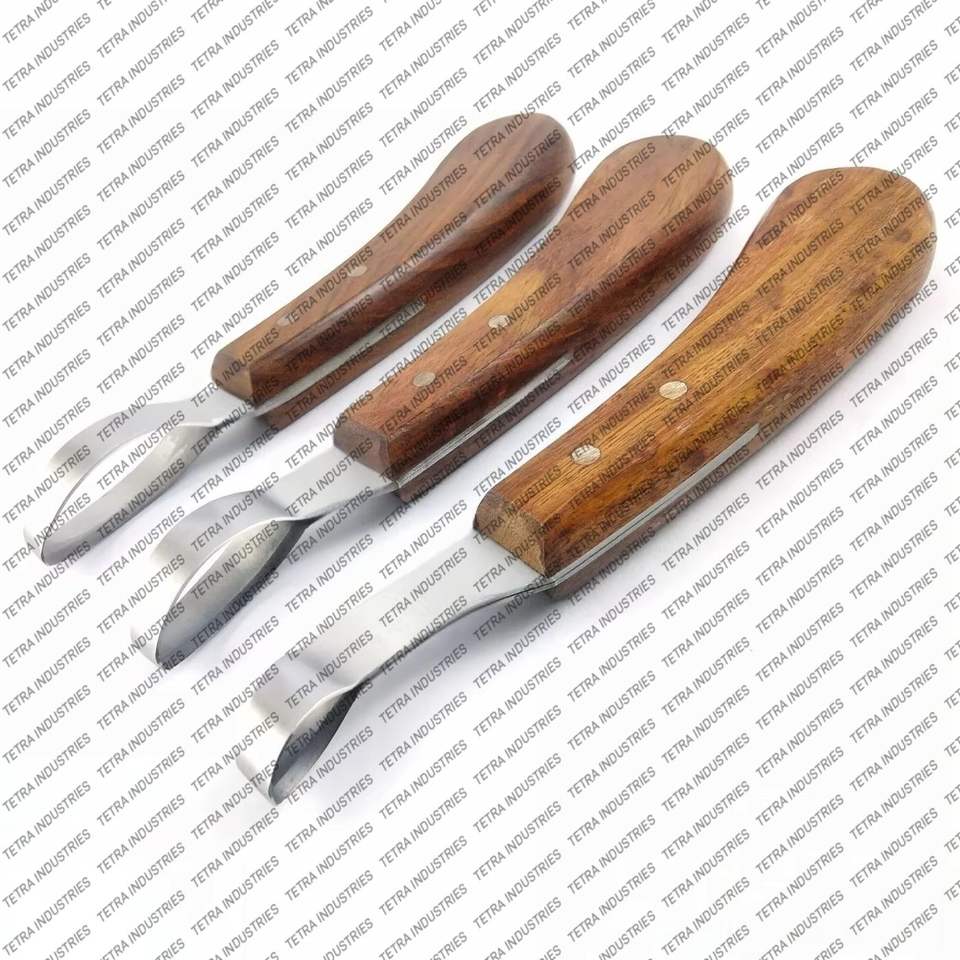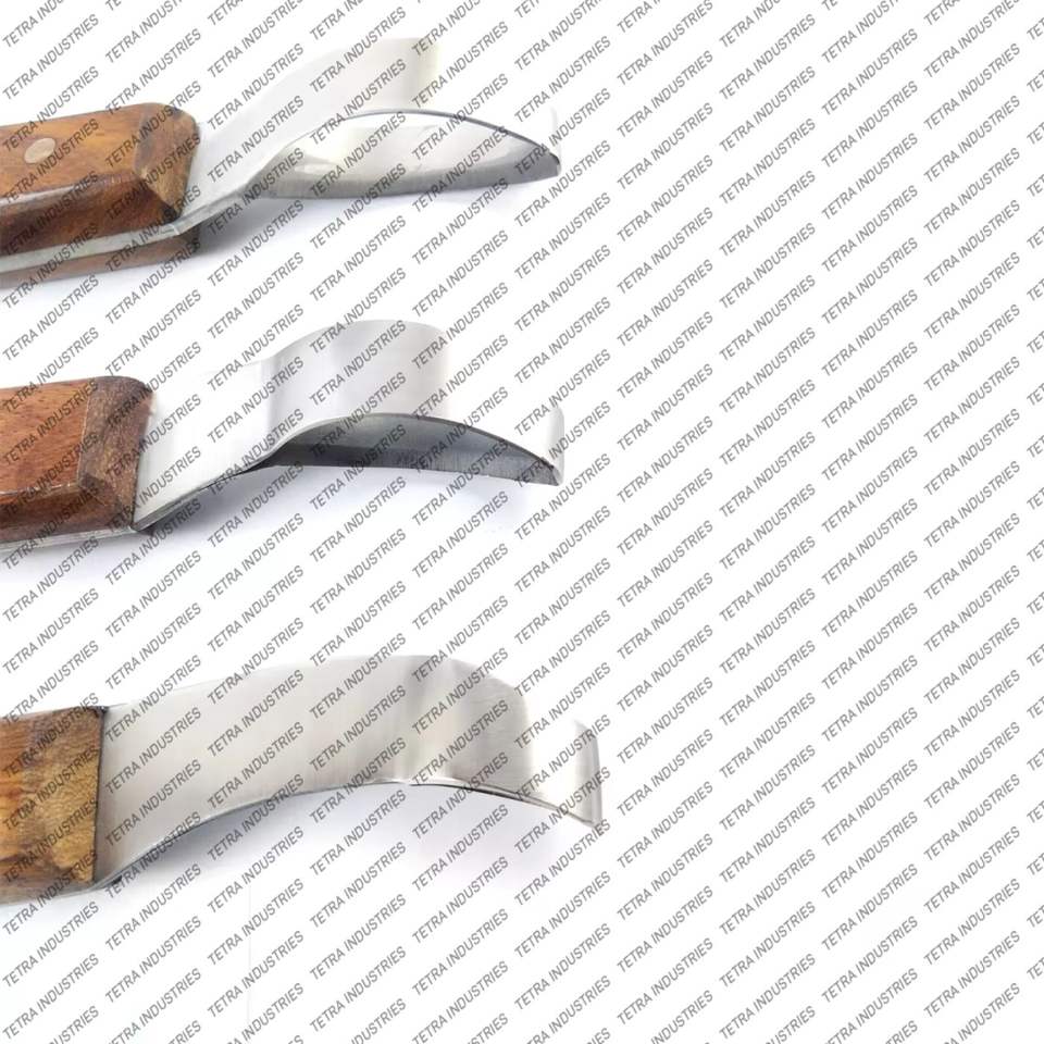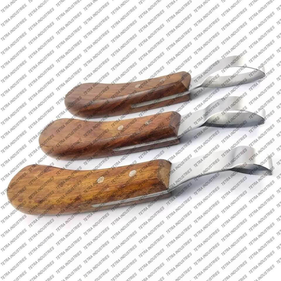 Nom du produit:Ensemble de 3 pièces de haute qualité : couteau à sabot à boucle, manche en bois, pour griffes de cheval.