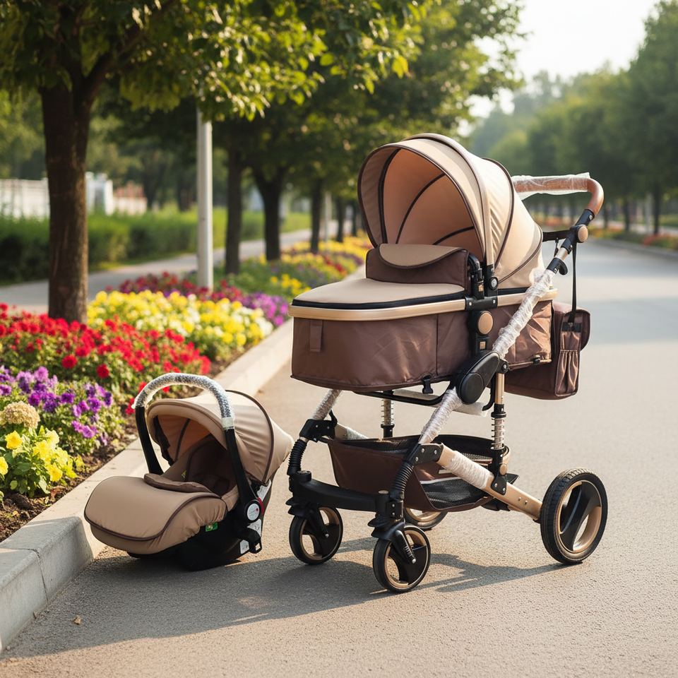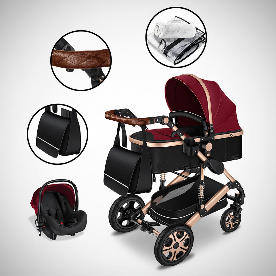 Poussette Bébé 3 en 1 de Haute Qualité, Poussette Luxe 2 en 1 à Chariot Élevé, Chariot de Voyage Multifonctionnel, Poussettes Bébé Portables