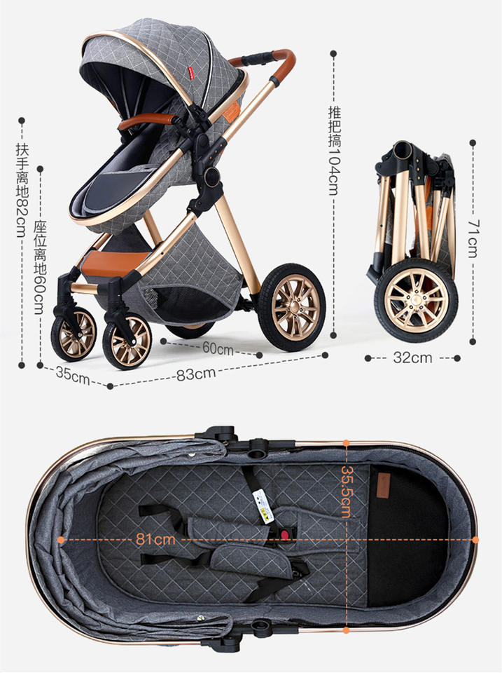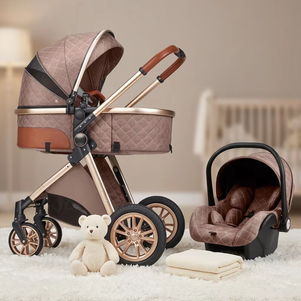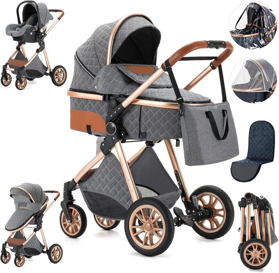 Poussette Bébé 3-en-1 de Haute Qualité Légère Compacte Multifonctionnelle avec Siège Auto et Design Haute Vue
