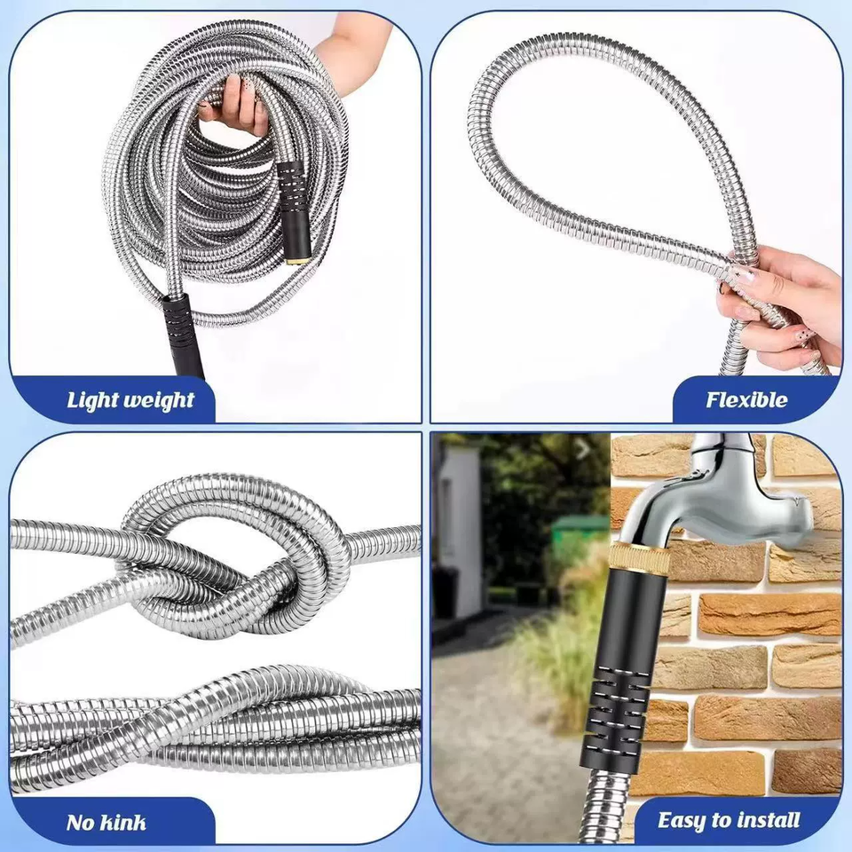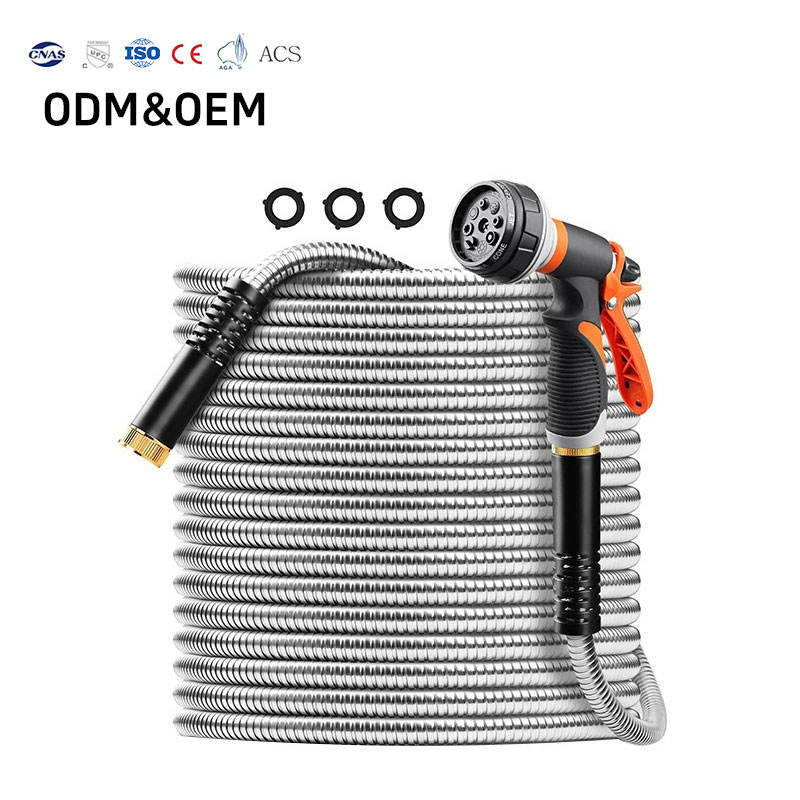Tuyau d'arrosage en acier inoxydable 304 de haute qualité avec intérieur en PVC, enroulable, anti-emmêlement, durable, léger, longueur personnalisable