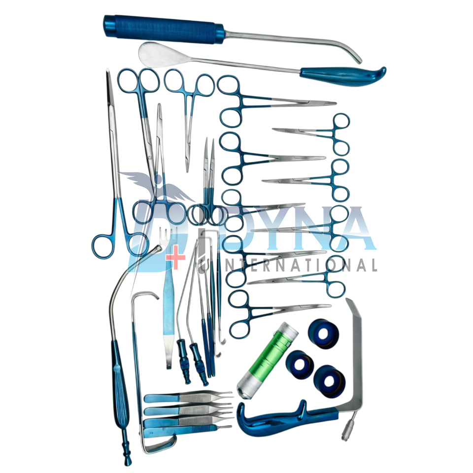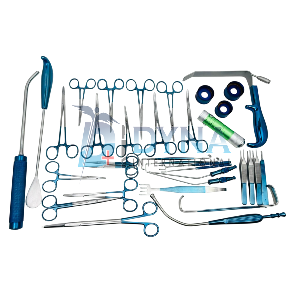Ensemble de 32 pièces de haute qualité pour augmentation mammaire avec boîte en acier inoxydable (revêtement bleu), instruments de chirurgie plastique certifiés CE