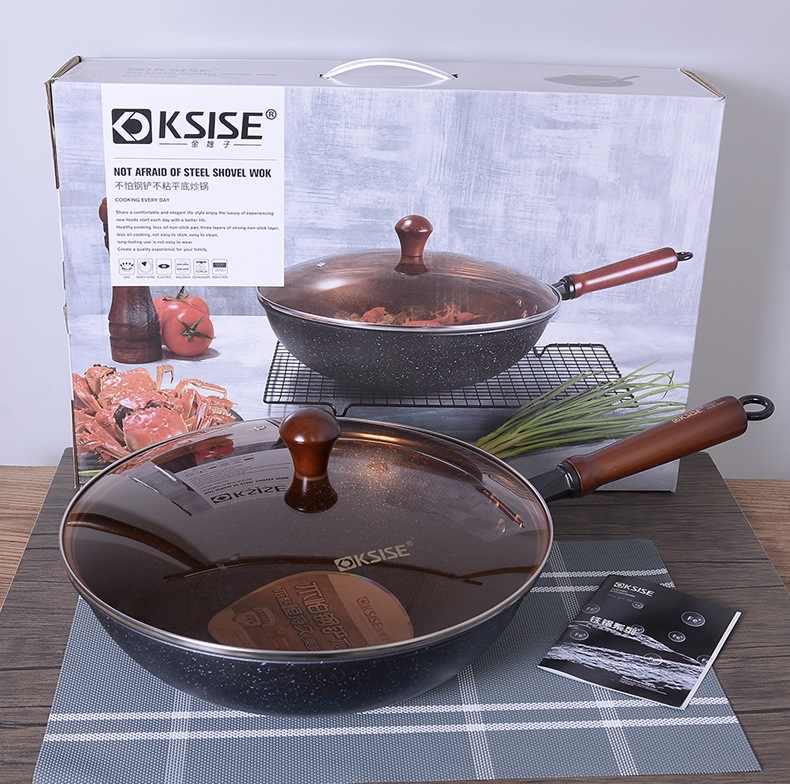 Casseroles de Wok de haute qualité de 32cm, pas de rouille, casserole de cuisine domestique, couvercle en verre, cuisinière à Induction, Wok