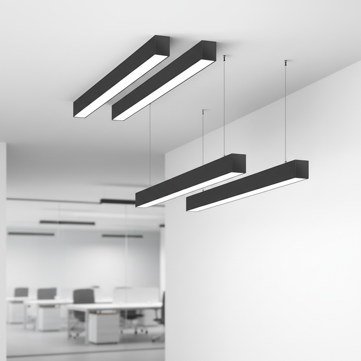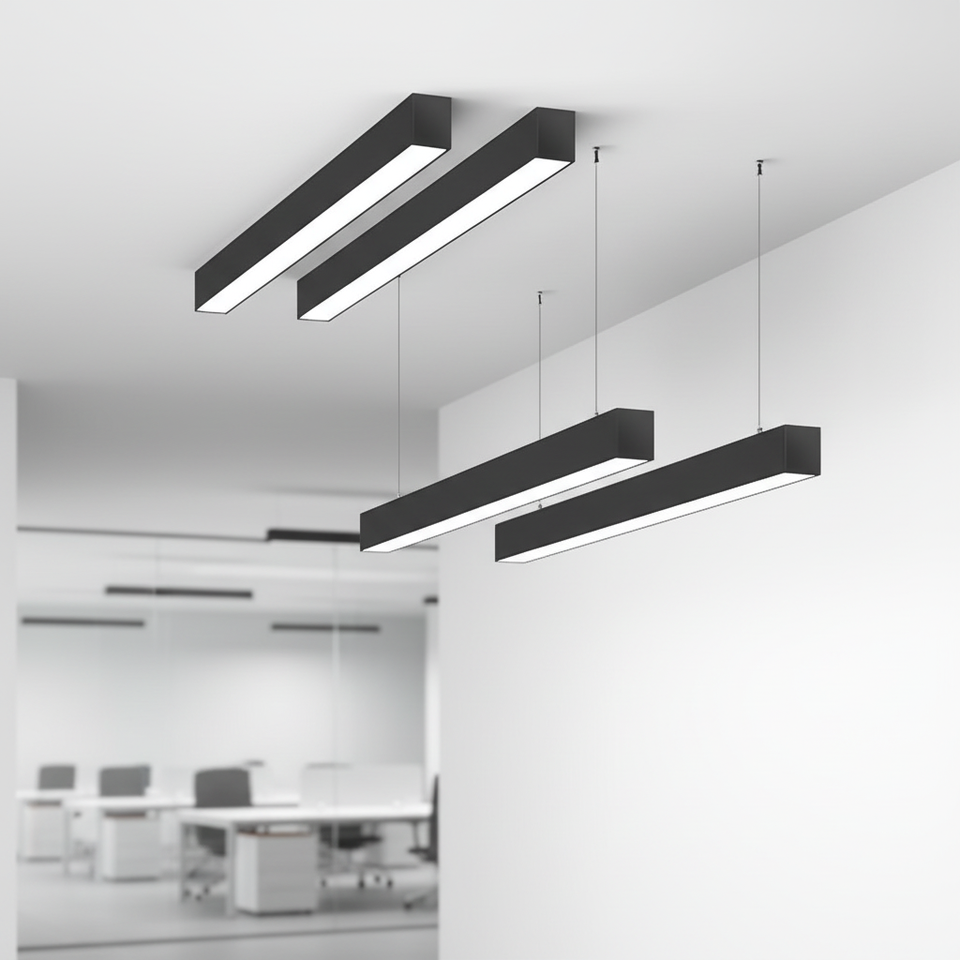 Luminaire suspendu linéaire LED de haute qualité 36W 48W 60W en aluminium noir et plastique pour intérieur, bureau, angle de faisceau de 180°