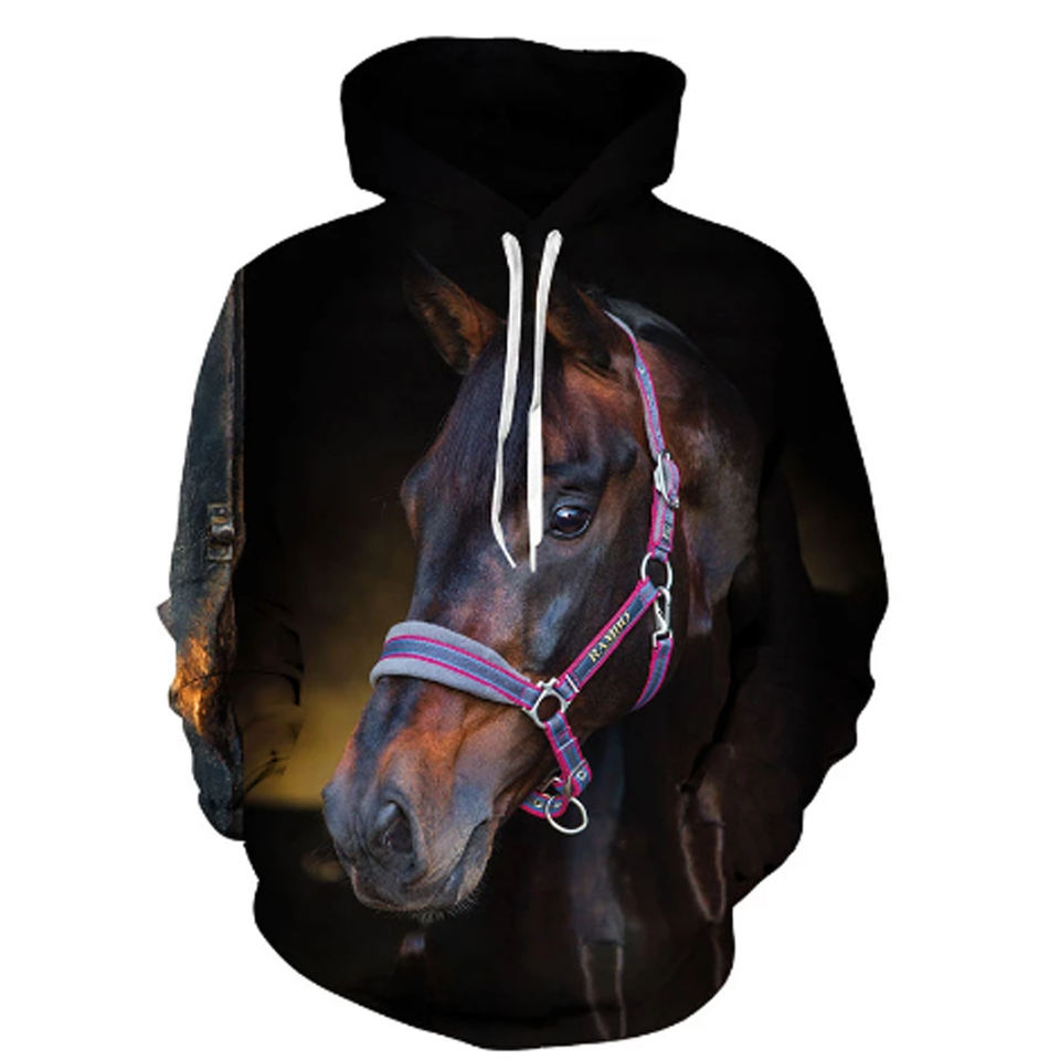 High Quality 3D Printed Horse Pullover Hoodie Men Funny Animal 100% Cotton Fleece Fabric New Style Casual Plus Hot Winter 3XL