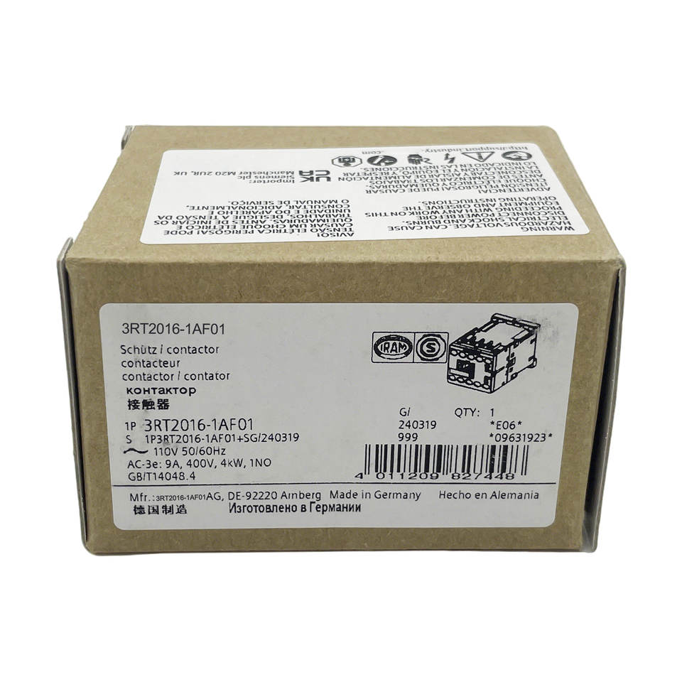 Contacteur de haute qualité 3RT2016-1AF01 9A 4kW 3P 110V AC 50/60Hz 3NO pour montage sur panneau ou rail DIN pour commande de moteur SIRIUS S00
