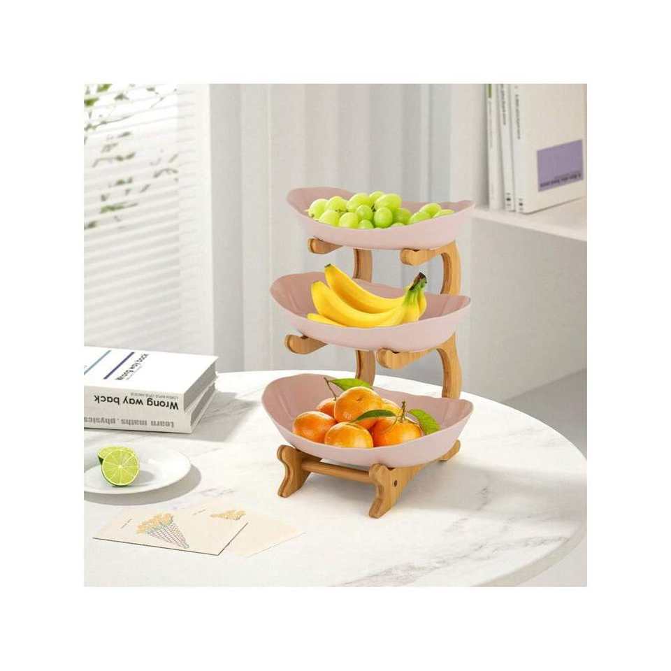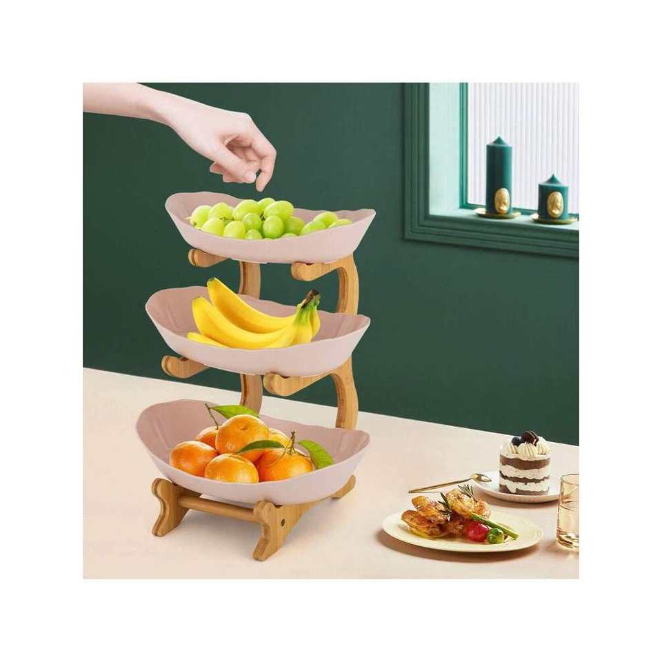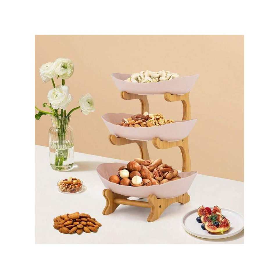 Haute qualité 4.5 pouces bambou 3 niveaux bols de service avec support PP fruits bol Snack plateau plaque support pour fête mariage