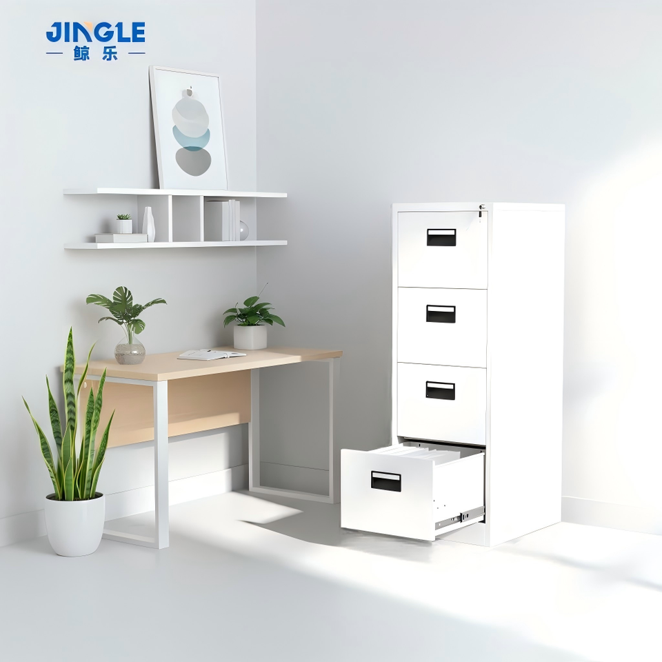 Armoire de classement métallique de haute qualité à 4 tiroirs avec serrure, armoire de bureau en acier en gros avec poignée encastrée pour dossiers A4 et FC