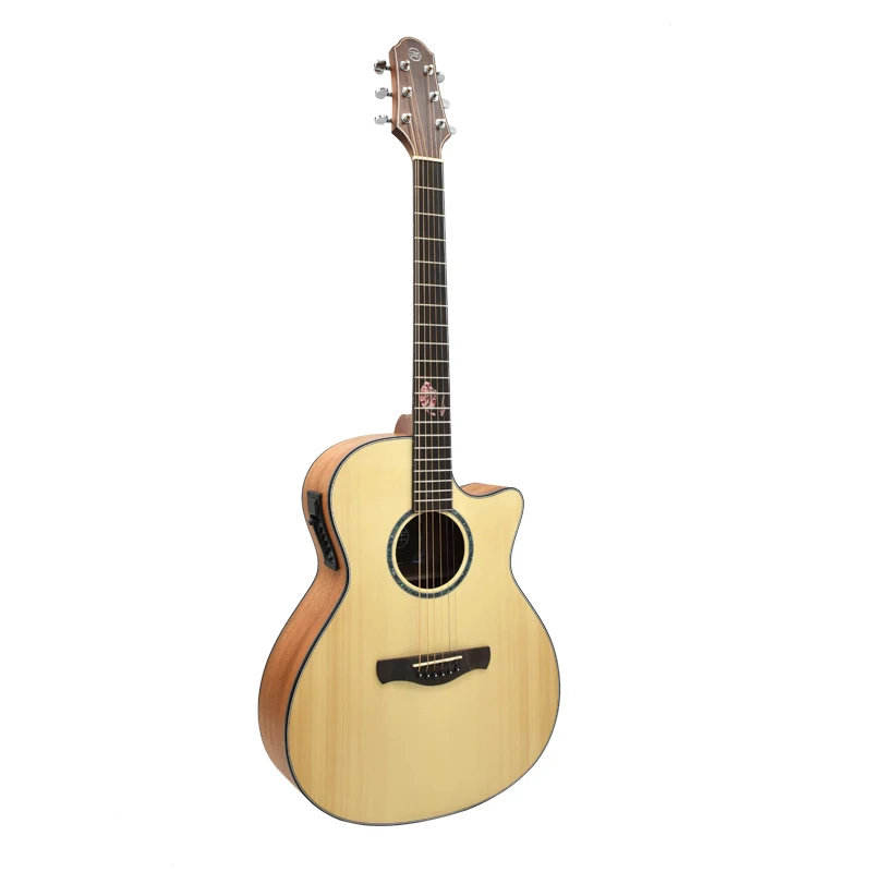 Guitare acoustique électrique résonnante de haute qualité 40 pouces, corps en acajou, dos/côtés en érable, finition brillante, micro H pour basse classique