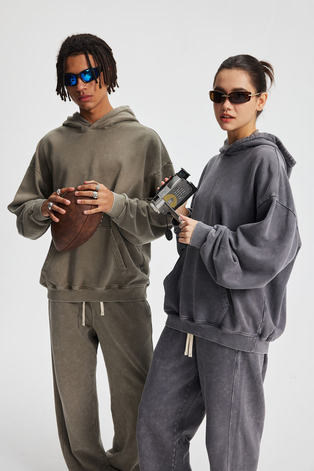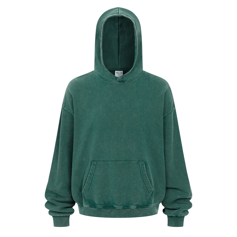 Sweat à capuche surdimensionné personnalisé en coton éponge 100% de haute qualité 430 g/m², délavé à l'acide, avec broderie en relief vintage, épais et à capuche