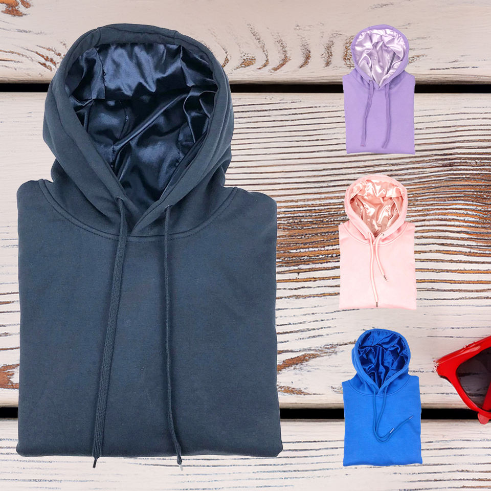 High Quality 480 Gsm Men's Sweatshirts in Plus Size Wholesale Silk Hood Satin Line Hoodies with Plain Design for Winter Hoodies