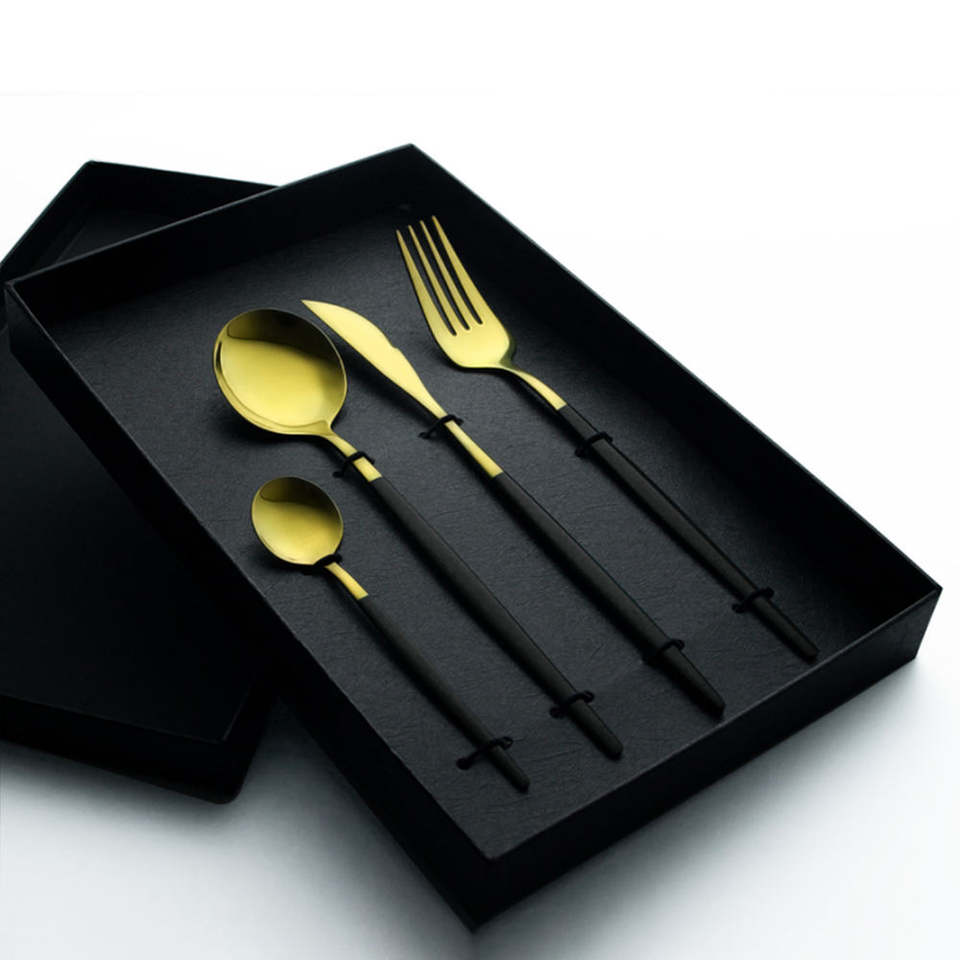 Ensemble de couverts de luxe en or de haute qualité 4 pièces pour mariage, cuillères, fourchettes et couteau, ensemble de couverts en acier inoxydable 304 avec boîte cadeau
